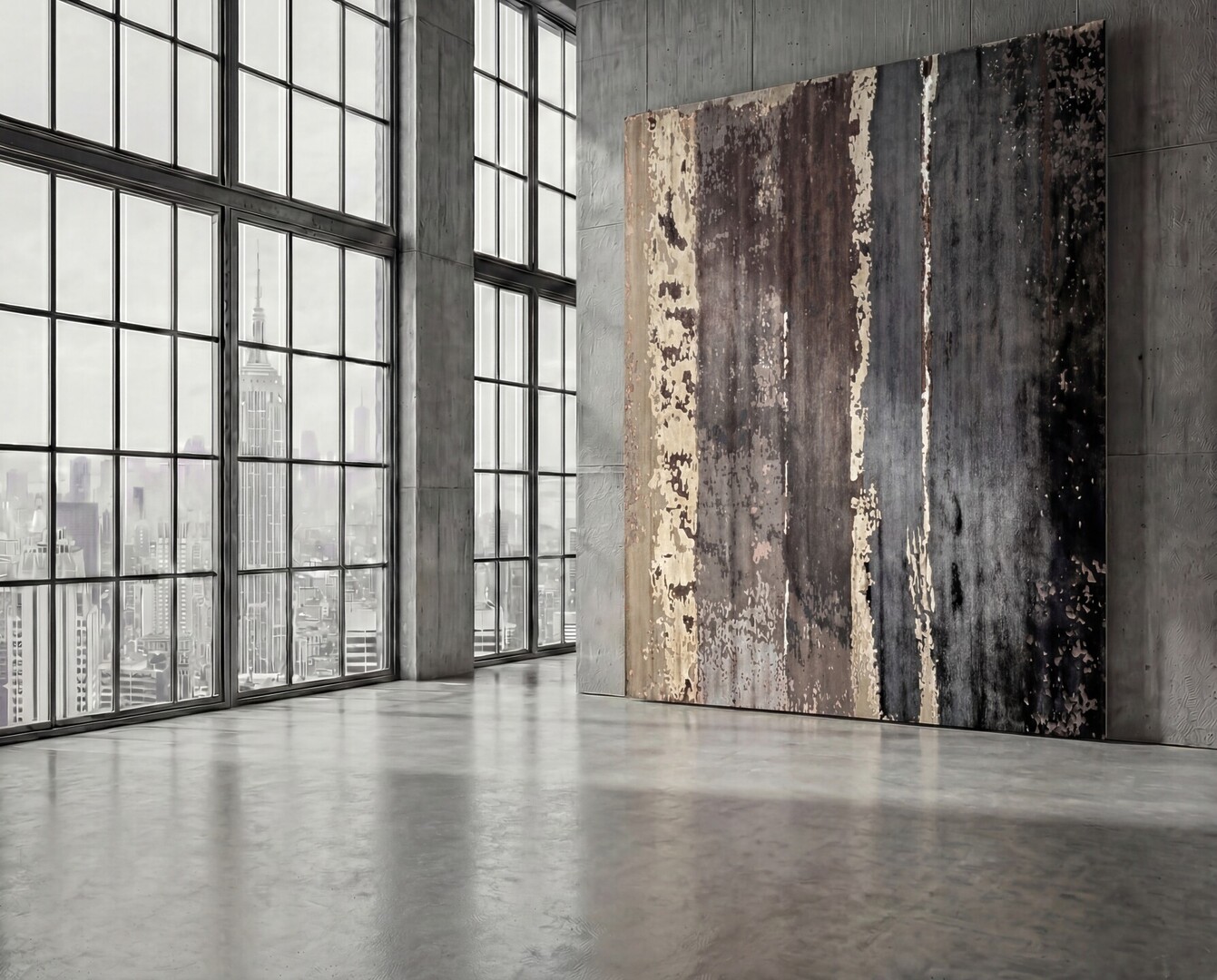 - Subtle, irregular linear textures add depth to the rug, all rendered in luxurious tone-on-tone beige, grey and sand colors for timeless and modern sophistication.