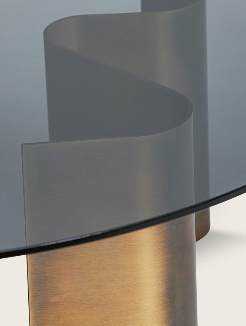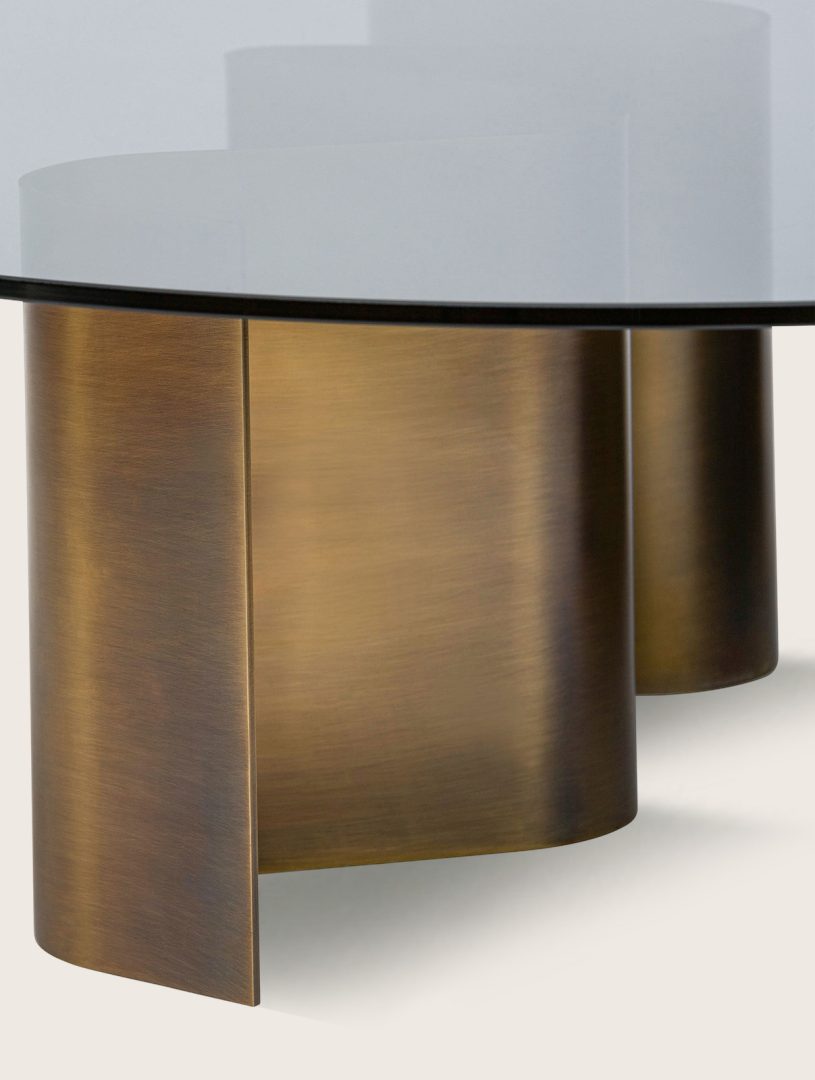 The DUNE LOW TABLE collection stands as an epitome of timeless elegance within the ELIE SAAB Maison offerings. Its foundation is a masterpiece, meticulously crafted by Italy’s finest artisans: a flowing wave meticulously shaped from curved brass plates, crowned with a top surface in luxurious wood, stone, marble or smoked glass.