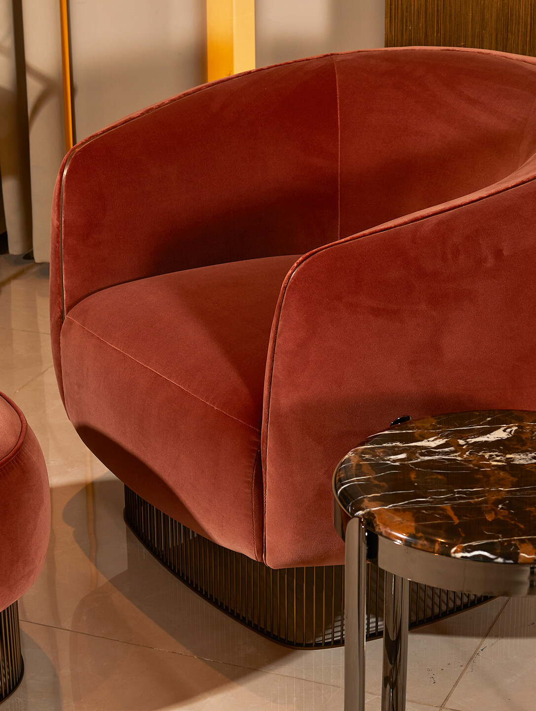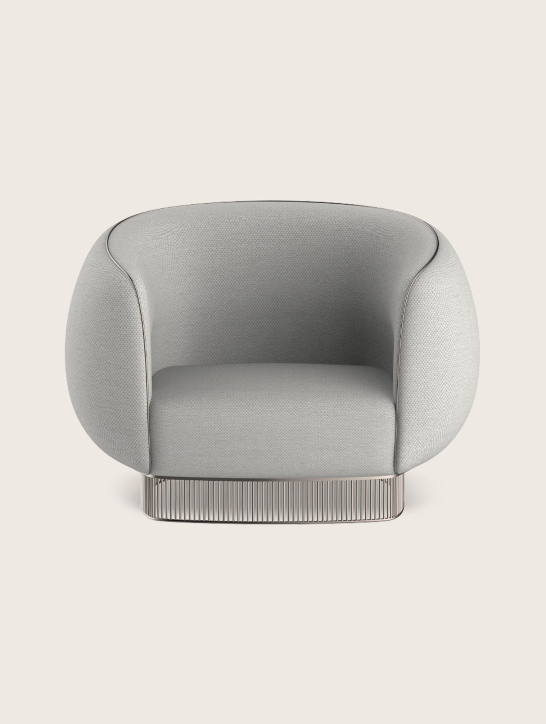 The Elite High Armchair features a structure crafted from plywood and polyurethane foam, ensuring both comfort and durability. Its sinuous, semicircular silhouette rests on an exclusive base in polished or bronzed brass, with optional satin, bronzed, or polished brass piping. For a softer look, the chair is also available without metal piping, using fabric or leather piping from the collection. Upholstered in sumptuous materials and accented with meticulous detailing, it embodies the brand’s signature blend of timeless luxury and craftsmanship—transforming any interior into a space of quiet sophistication and prestige.