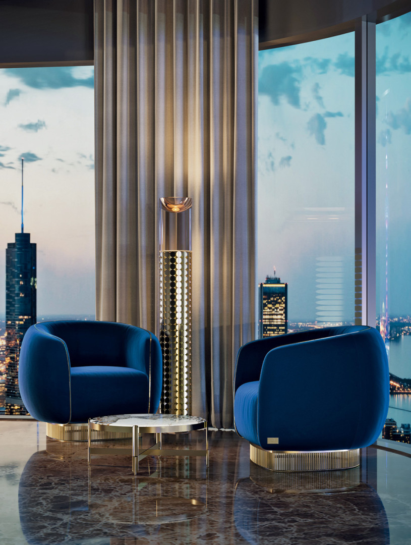 The Elite High Armchair by Elie Saab Maison is a refined expression of sculptural elegance, seamlessly blending haute couture inspiration with contemporary design.