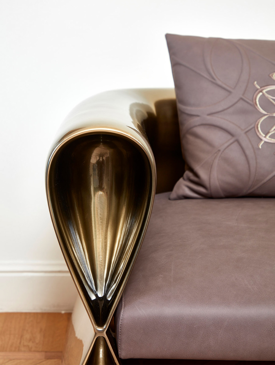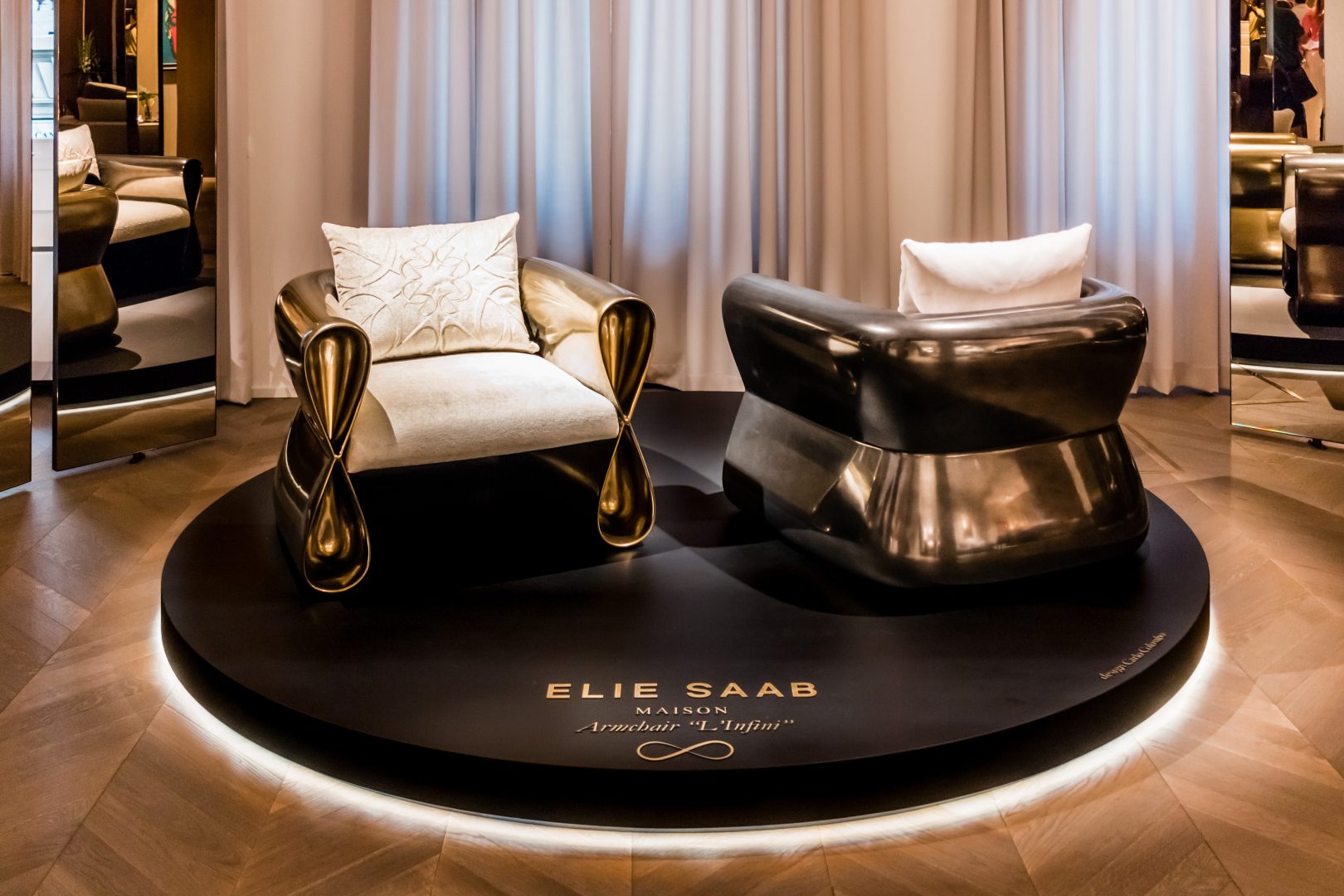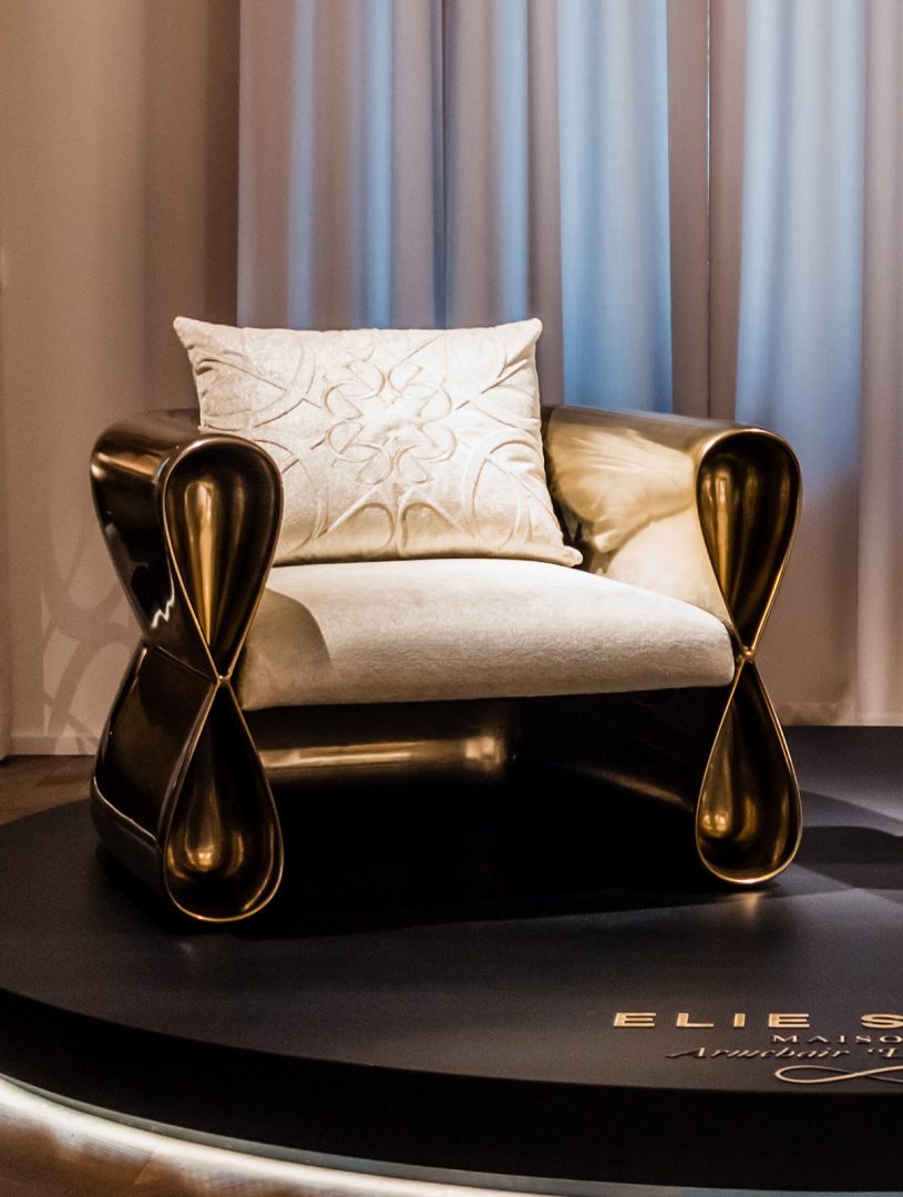 Its distinctive form is defined by two flowing, sculptural lines that loop into elegant infinity shapes, seamlessly framing the seat. This fluid structure creates a visual sense of movement and unity, with no clear beginning or end. Meticulously crafted in Italy, the armchair pairs innovative engineering with luxurious finishes, resulting in a piece that is both technically advanced and aesthetically captivating. The L’infini Armchair transcends traditional furniture design, offering a bold statement of modern luxury and artistic craftsmanship.