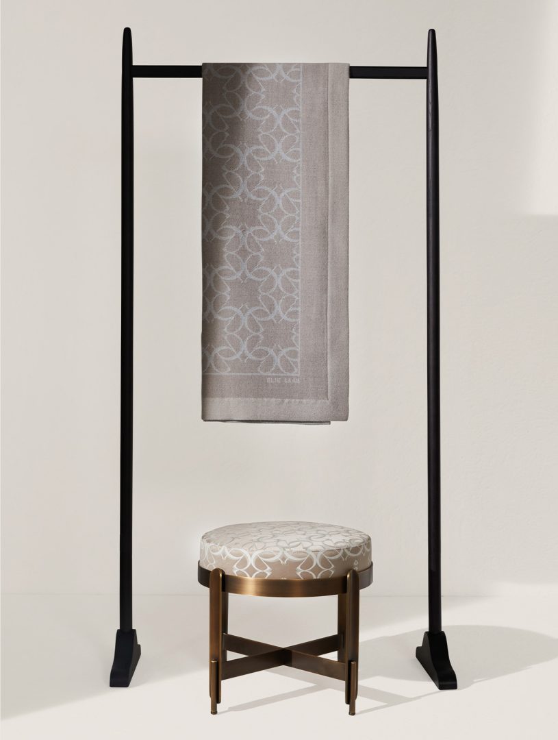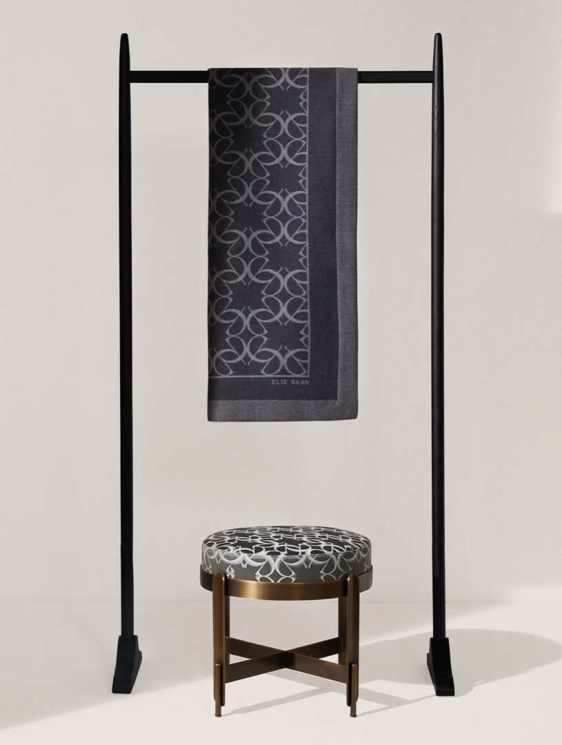 - The ELIE SAAB Monogram Plaid is crafted from a luxurious blend of wool and silk, offering an elevated balance of comfort and sophistication.