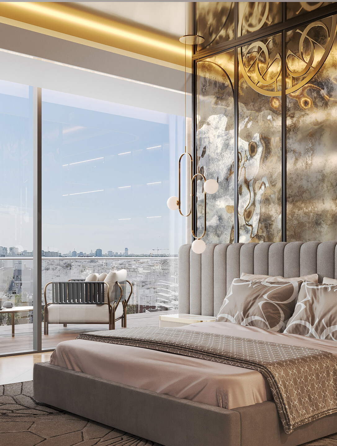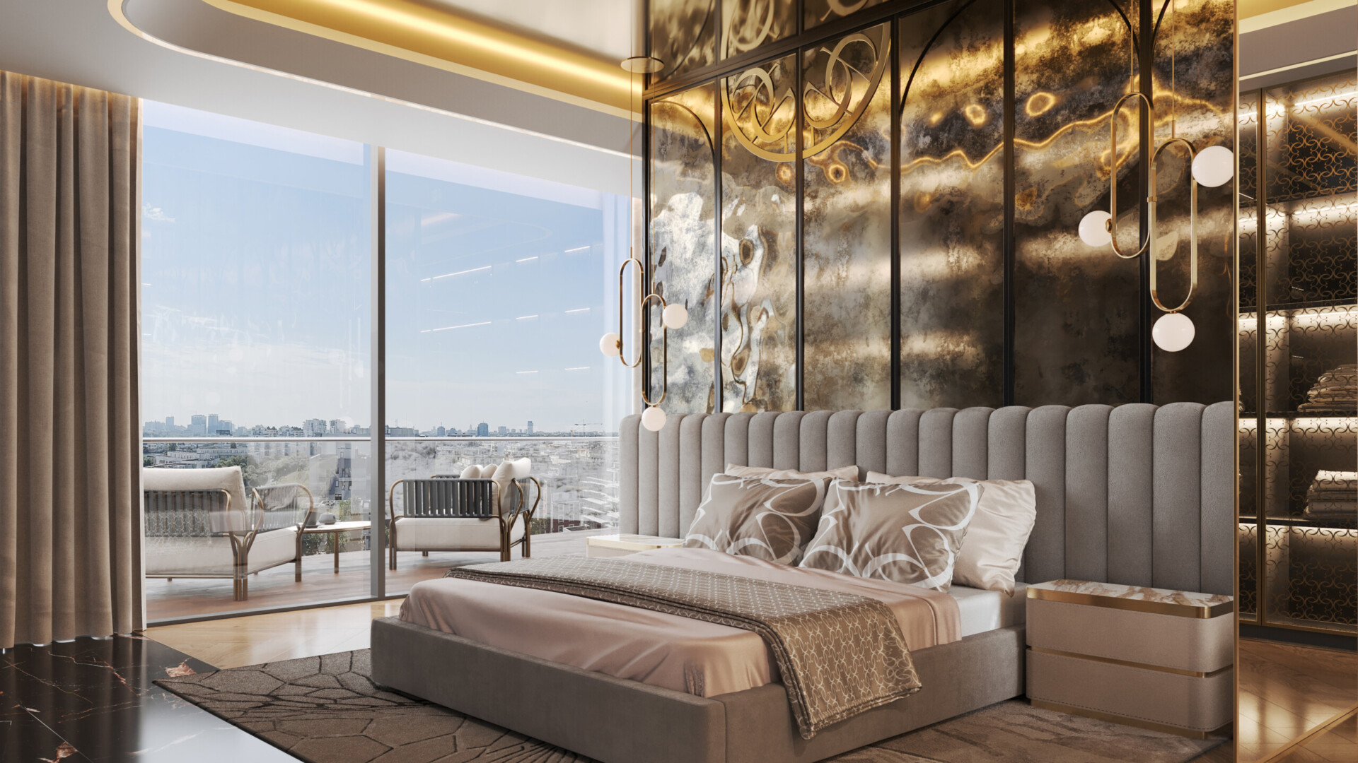 The Monolith Bed by Elie Saab Maison embodies sculptural elegance and refined comfort.