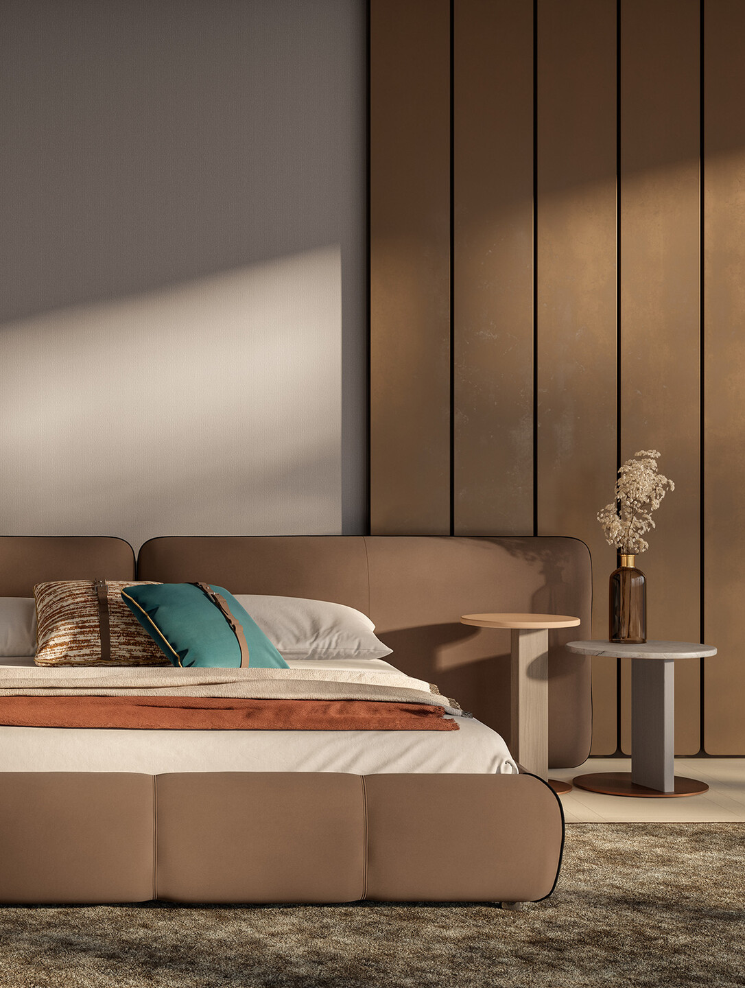 The Monza Bed is a refined expression of contemporary Italian design, where comfort meets understated elegance.