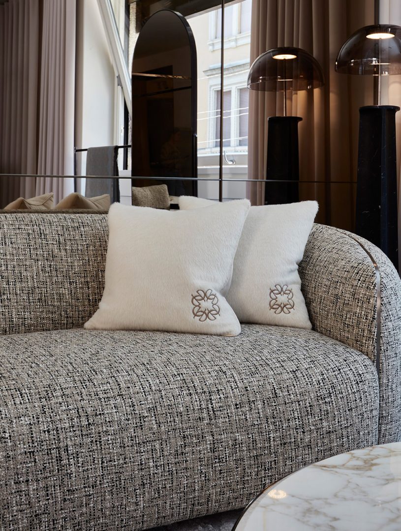 - The NEIGE Cushion from ELIE SAAB features a soft, luxurious front crafted from a blend of baby Suri alpaca, wool, and nylon, complemented by a pure virgin wool back.