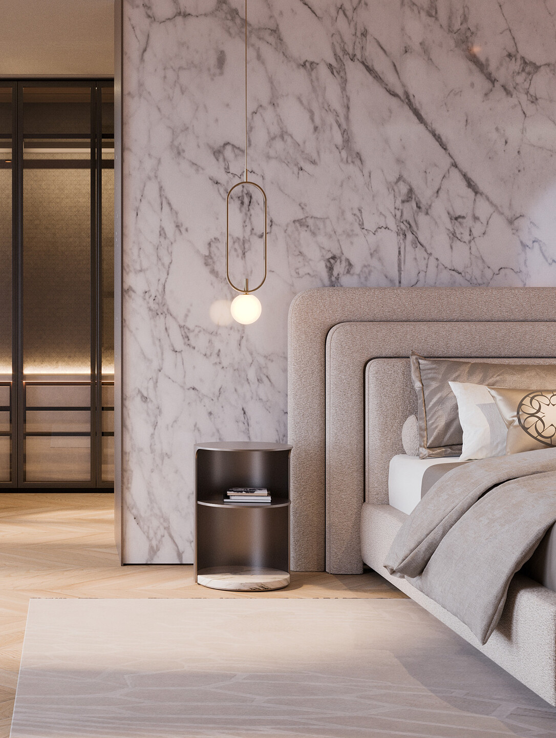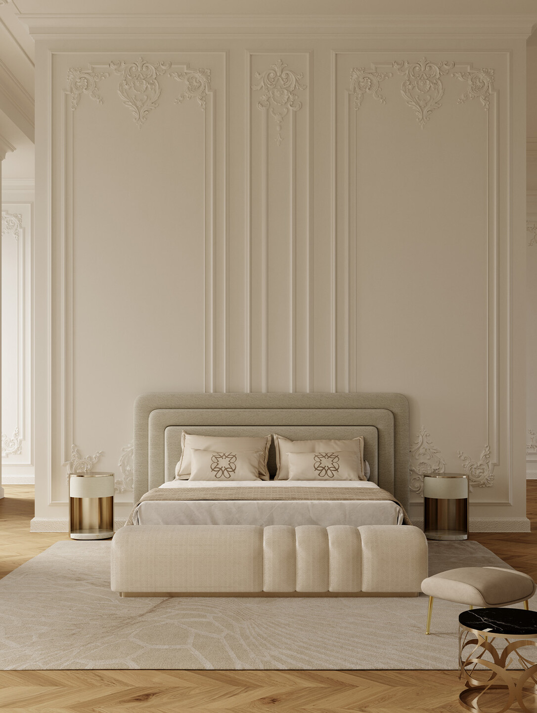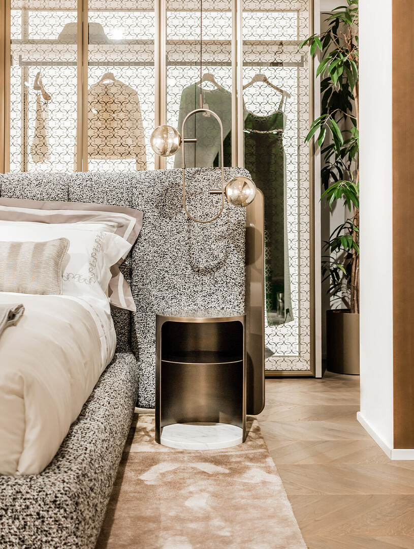 The PALACE Nightstand by Elie Saab Maison embodies refined luxury through a harmonious blend of noble materials and meticulous craftsmanship.