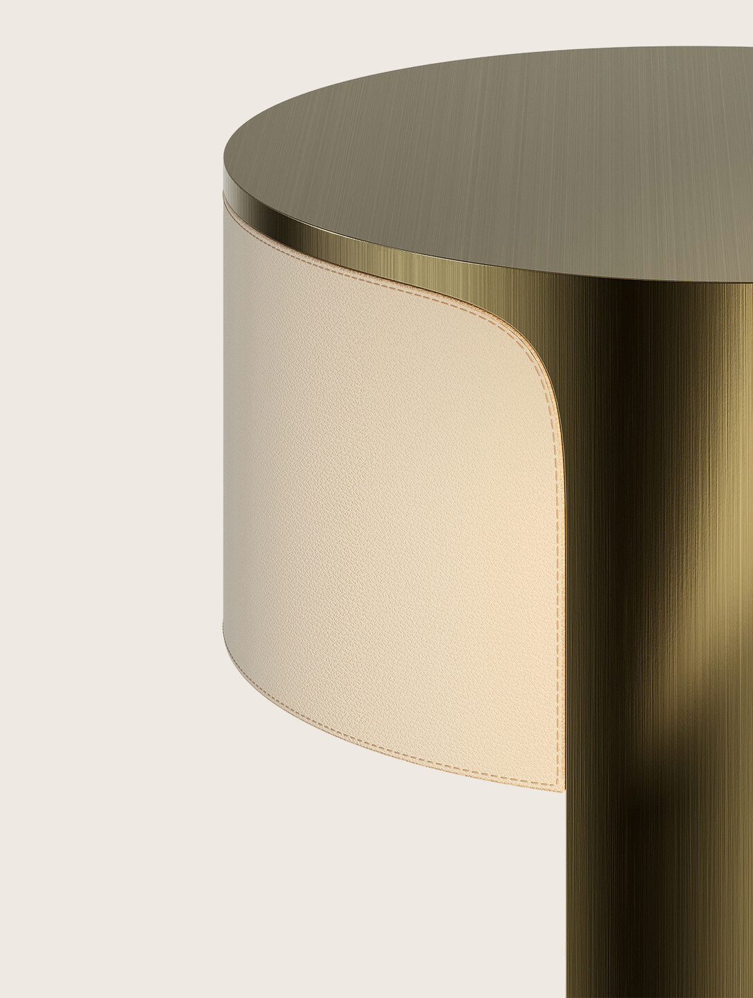 Structure and shelve in satin, bronzed or hammered brass or polished steel. Base available in all marbles or stones from the collection. Available also with drawer in all leathers from the collection.