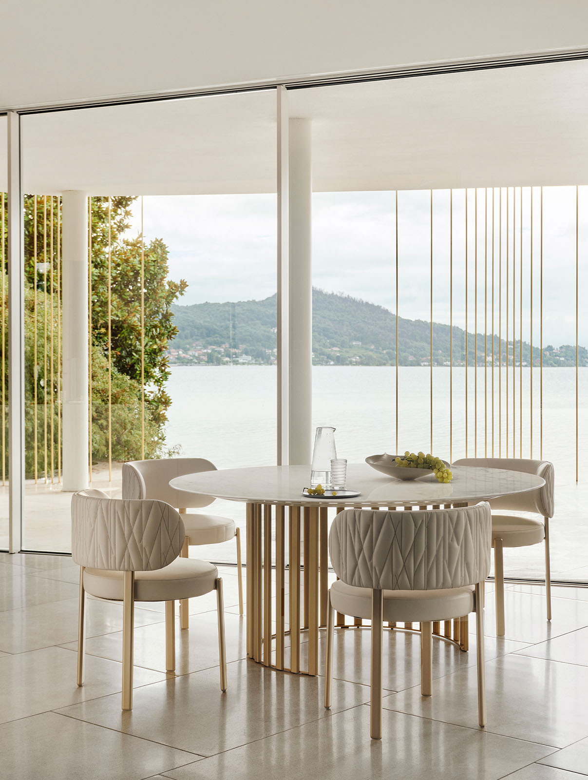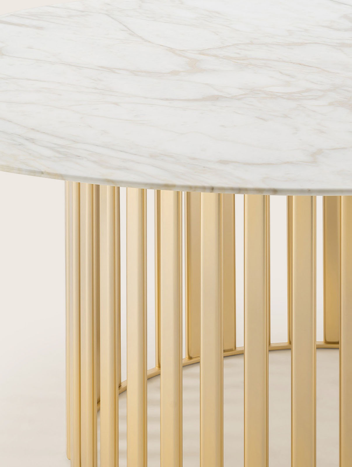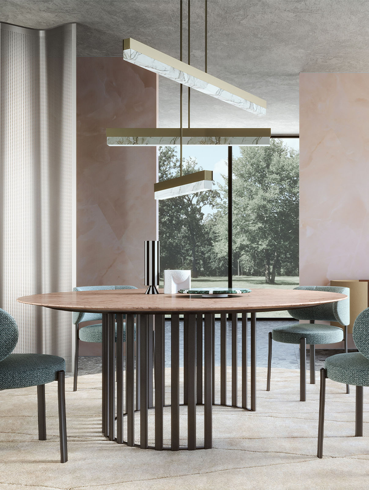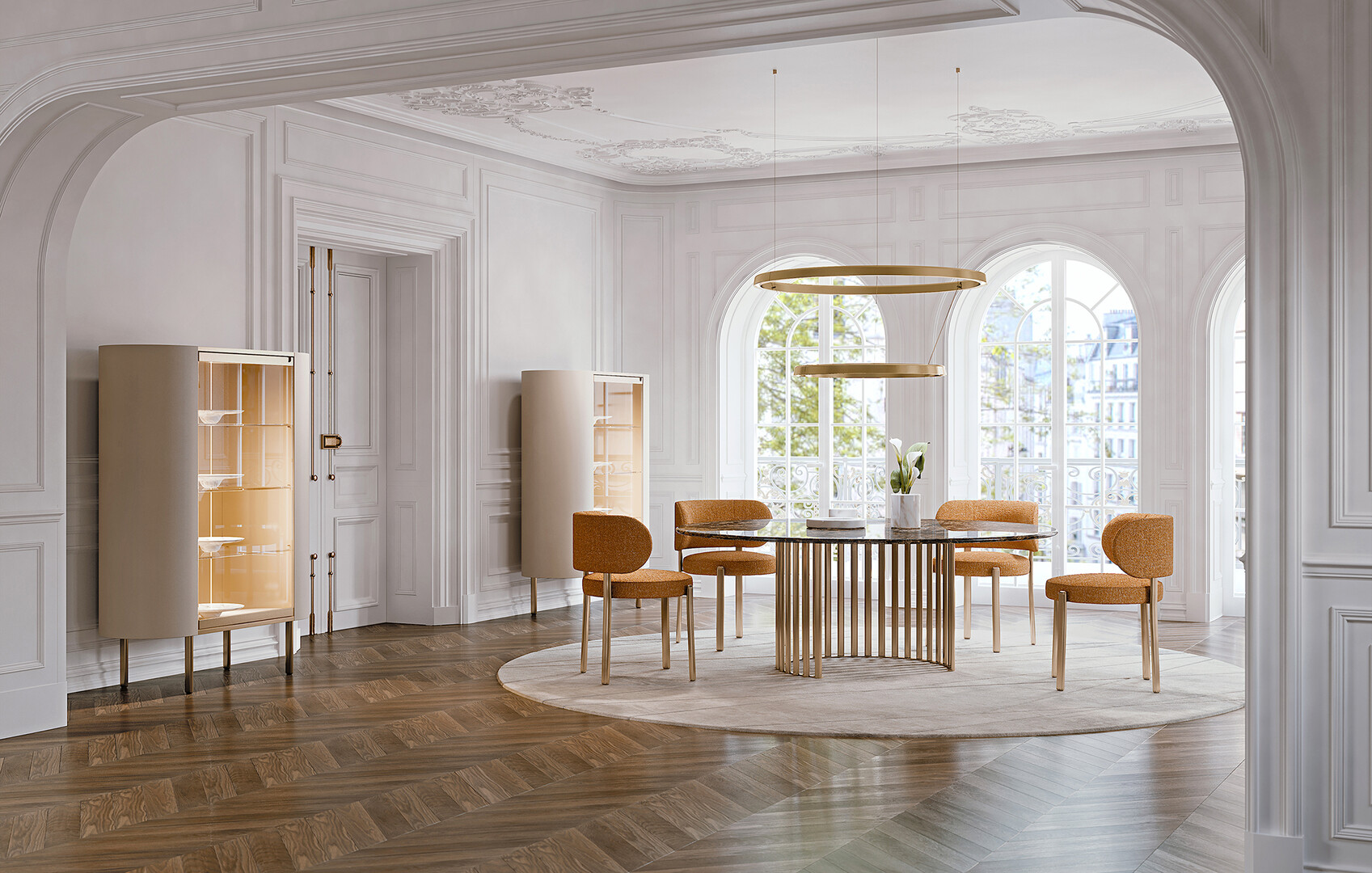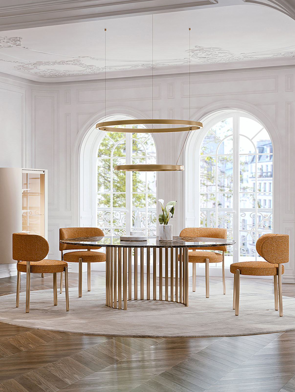 The Roma Round Table from the Roma Collection is a masterful blend of Italian craftsmanship and contemporary elegance. Its top is available in a variety of luxurious options: MDF, monochrome lacquered polished polyester, walnut wood, marble, or glass, allowing for versatile aesthetic choices. The table’s base is crafted in metal, offered in Champagne Gold or Graphite Grey finishes, perfectly complementing its sculptural silhouette. Its circular form encourages effortless social interaction, while meticulous detailing and premium materials reflect a signature blend of tradition and modernity—delivering both functional excellence and timeless style.
