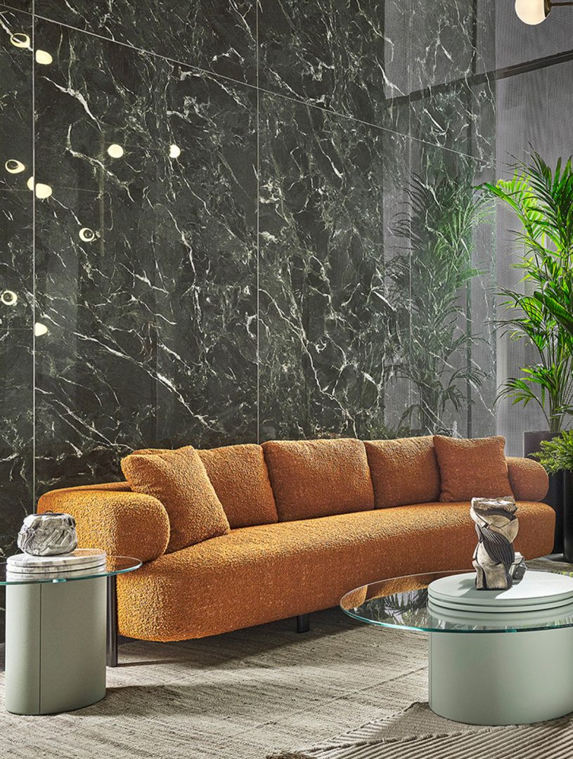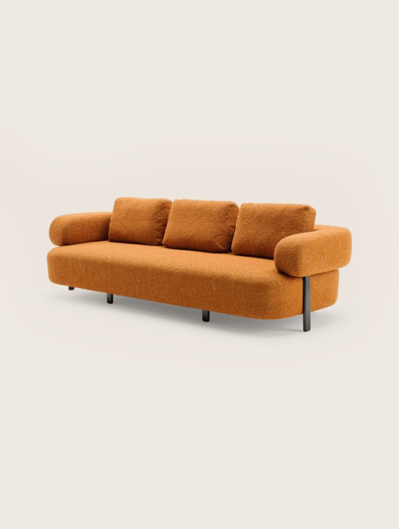 A modular seating system defined by generous proportions and relaxed comfort. Deep seating is paired with large, independent cushions, while a continuous perimeter armrest creates a composed and enveloping silhouette.