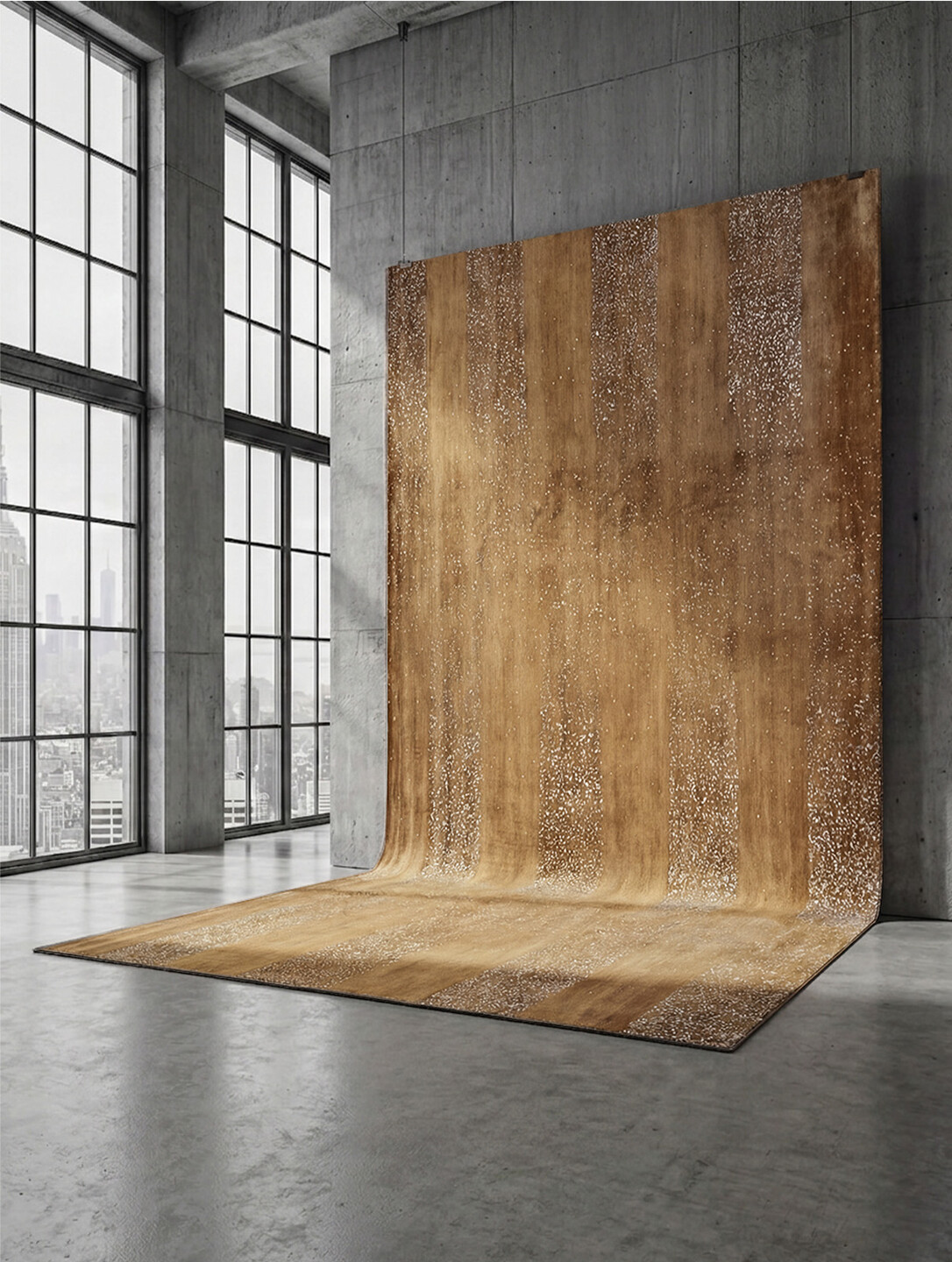 SPLENDORO (Gold Color): Expertly hand-knotted by master artisans in sumptuous silk or Tencel with exquisite metallic silver Lurex threads, weaving a subtle, luxurious shimmer that catches the light from every angle, SPLENDORO offers an indulgent, velvety softness underfoot paired with a gentle, luminous sheen. The high-density finish guarantees exceptional plush comfort, refined texture, and enduring resilience—ideally suited for contemporary homes that embrace sophisticated, modern serenity. Available as standard in generous sizes: 305 x 427 cm (10ft x 14ft), 366 x 457 cm (12ft x 15ft) and 366 x 549 cm (12ft x 18ft). Fully customizable in size, color palette, shape, pile height, and materials to harmonize perfectly with your vision and LAVARA furniture. SPLENDORO Carpet is made to order.