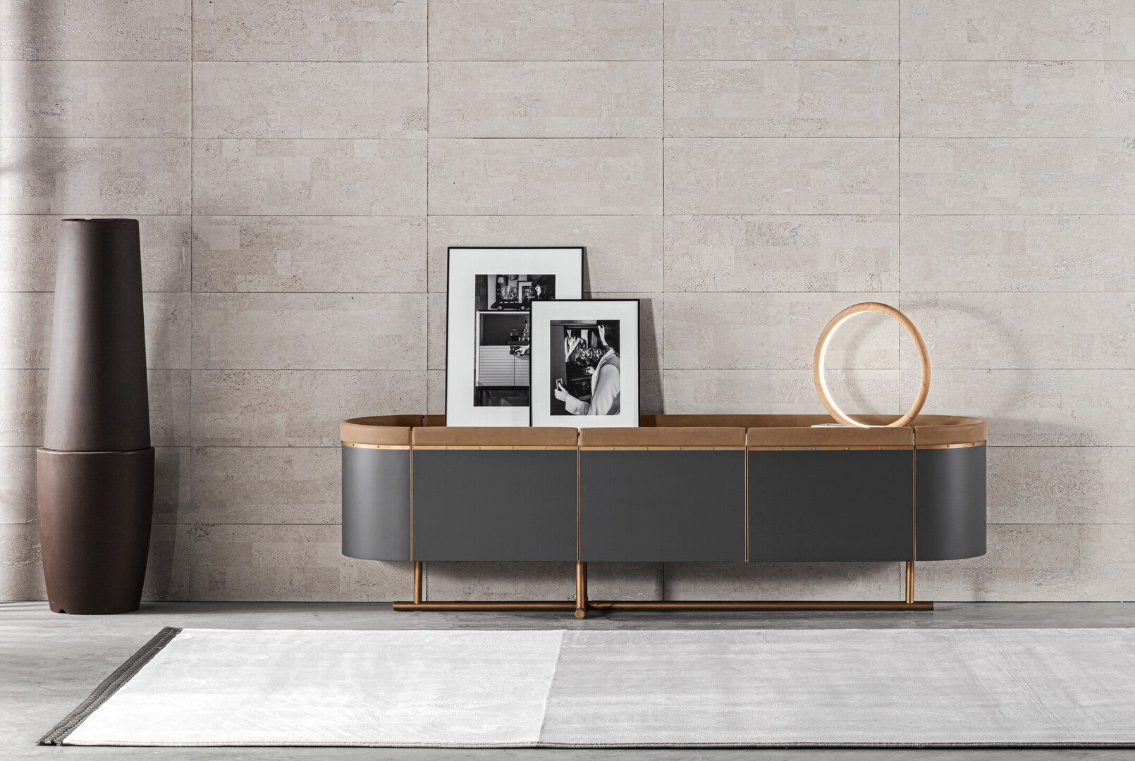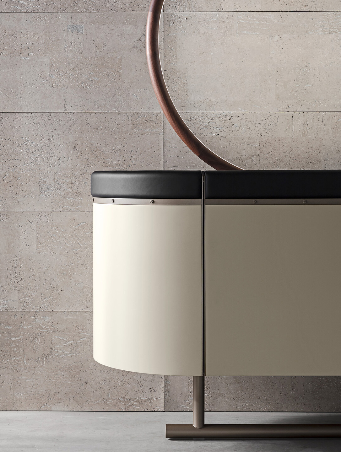 The Varigotti Sideboard blends contemporary Italian design with artisanal craftsmanship. Its structure is made of MDF panels in matte or glossy lacquer, topped with mirror, back-painted glass, or marble, while leather-covered handles and painted metal legs add refined detail. It offers ample storage without compromising elegance. Sculptural, versatile, and meticulously crafted, the Varigotti sideboard transforms functional storage into a statement of timeless style. Also available in the following size: 116.1″ x 21.7″ x H 27.6″ (295 x 55 x H 70cm).